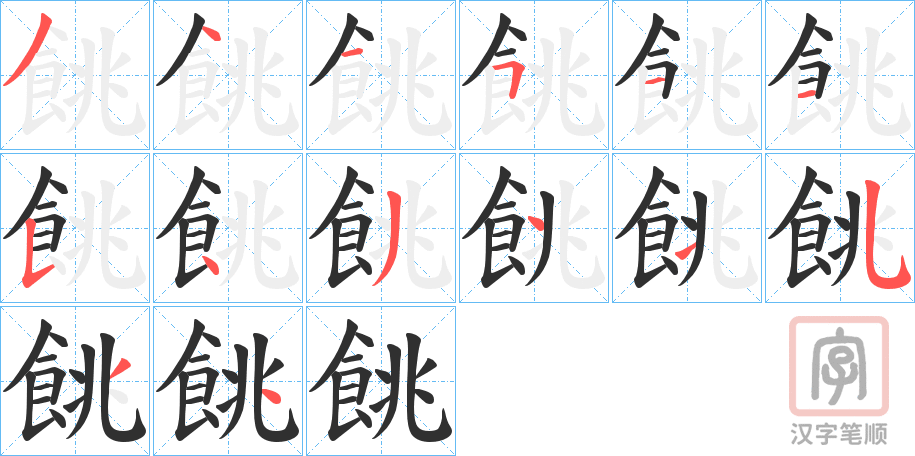 简体部首:飠部 部外笔画:6画 总笔画:14画 造字法: 可拆字为“食 兆”