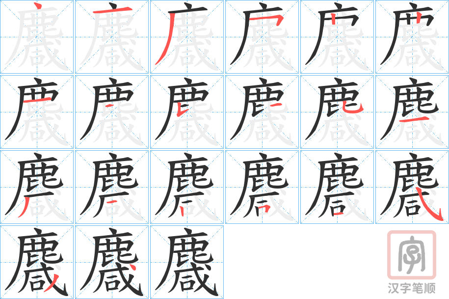 部首:鹿部 部外笔画: 9画 总笔画:20画 康熙字典:麙(20画)
