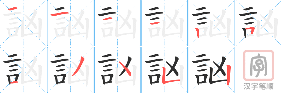 訩字的笔顺分步演示(一笔一画写汉字)