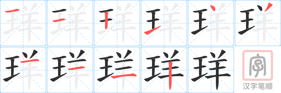 珜字的笔顺分步演示(一笔一画写汉字)
