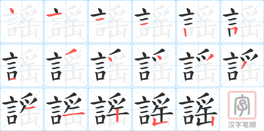 部首:言部 部外笔画: 10画 总笔画:17画 康熙字典:謡(17画)