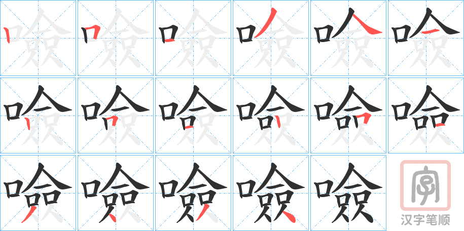 简体部首:口部 部外笔画:13画 总笔画:16画 造字法: 可拆字为“口 僉”