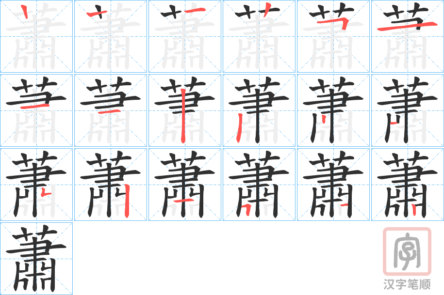 蕭字的笔顺分步演示(一笔一画写汉字)