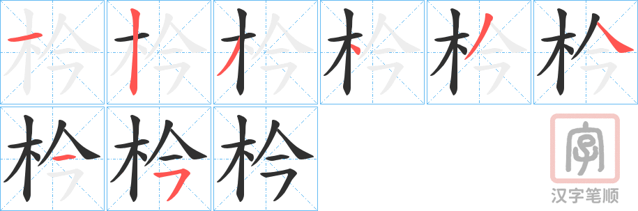 部首:木部 部外笔画: 4画 总笔画:8画 康熙字典:枔(8画)
