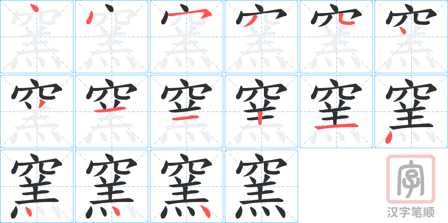 窯字的笔顺分步演示(一笔一画写汉字)