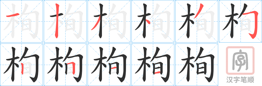 部首:木部 部外笔画: 6画 总笔画:10画 康熙字典:栒(10画)