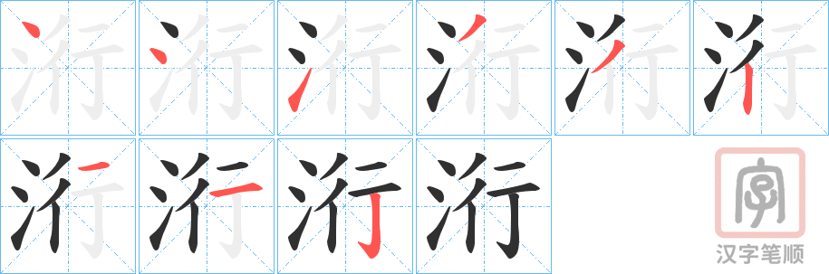 洐字的笔顺分步演示(一笔一画写汉字)