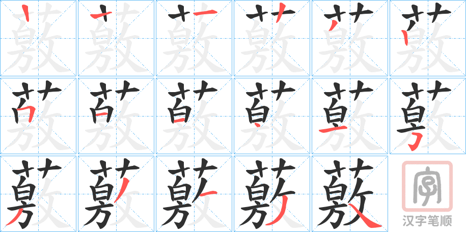 简体部首:艹部 部外笔画:13画 总笔画:16画 造字法: 可拆字为“艹 敫”