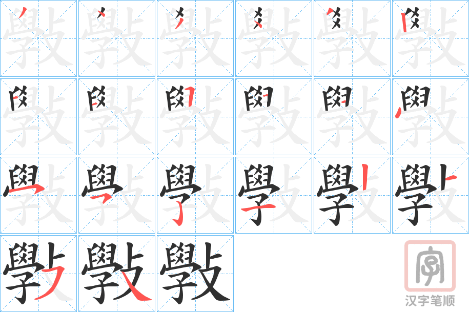 部首:攴部 部外笔画: 16画 总笔画:20画 康熙字典:斅(20画)