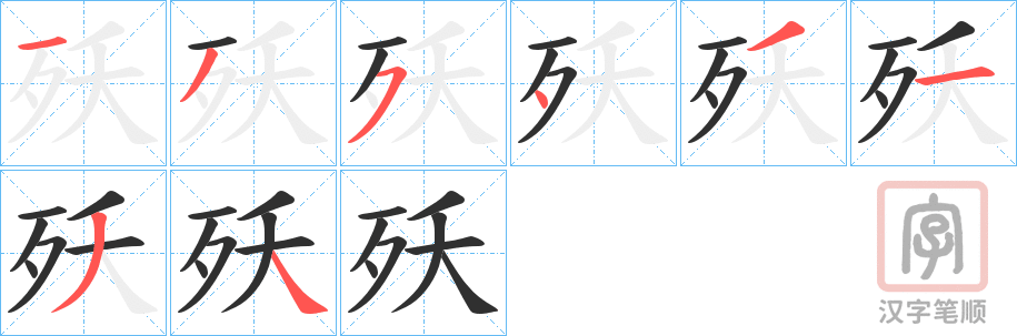 部首:歹部 部外笔画: 4画 总笔画:8画 康熙字典:殀(8画)