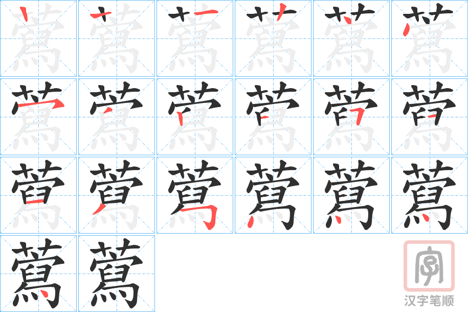 简体部首:艹部 部外笔画:15画 总笔画:18画 造字法: 可拆字为“艹 冩(寫)”