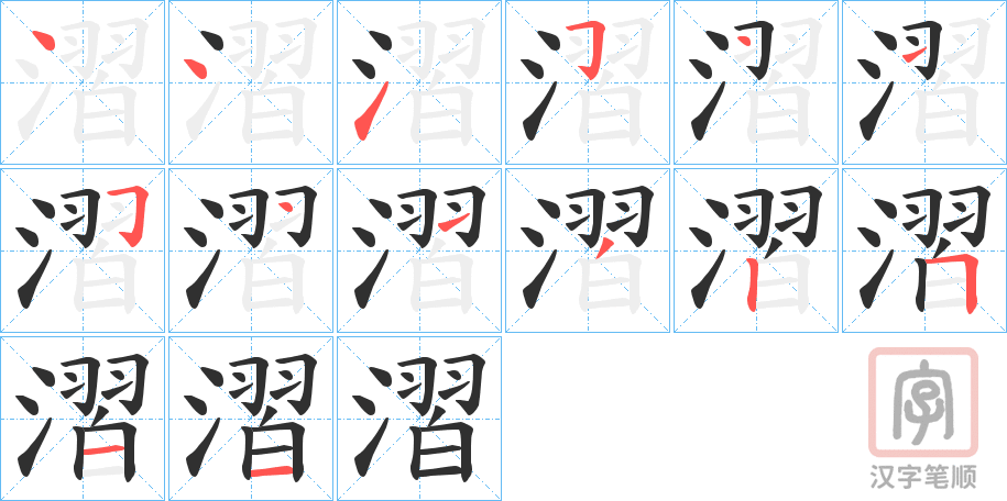 简体部首:氵部 部外笔画:11画 总笔画:14画 造字法: 可拆字为“氵 習”