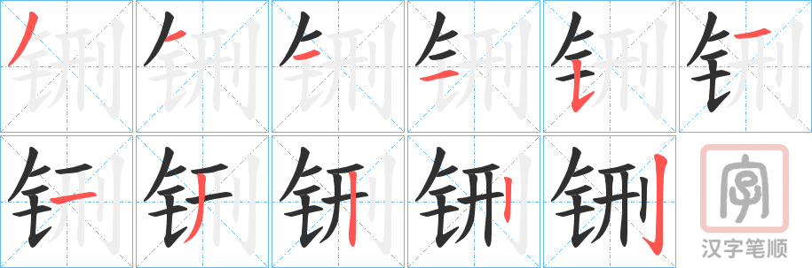 简体部首:钅部 部外笔画:6画 总笔画:11画 造字法:形声:从钅、刑声 可拆字为“钅 刑”