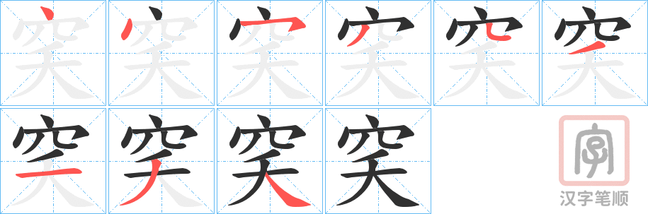 简体部首:穴部 部外笔画:4画 总笔画:9画 造字法:
