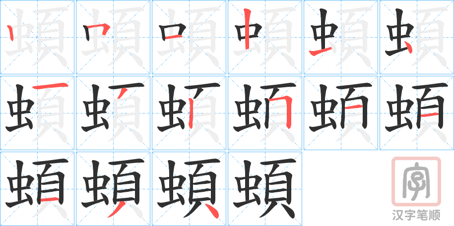 简体部首:虫部 部外笔画:9画 总笔画:15画 造字法: 可拆字为“虫 頁”
