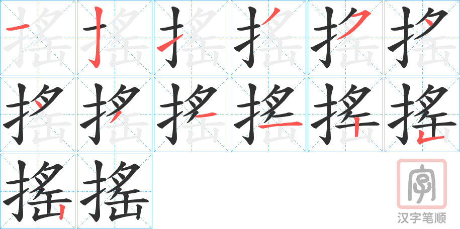 搖字的笔顺分步演示(一笔一画写汉字)