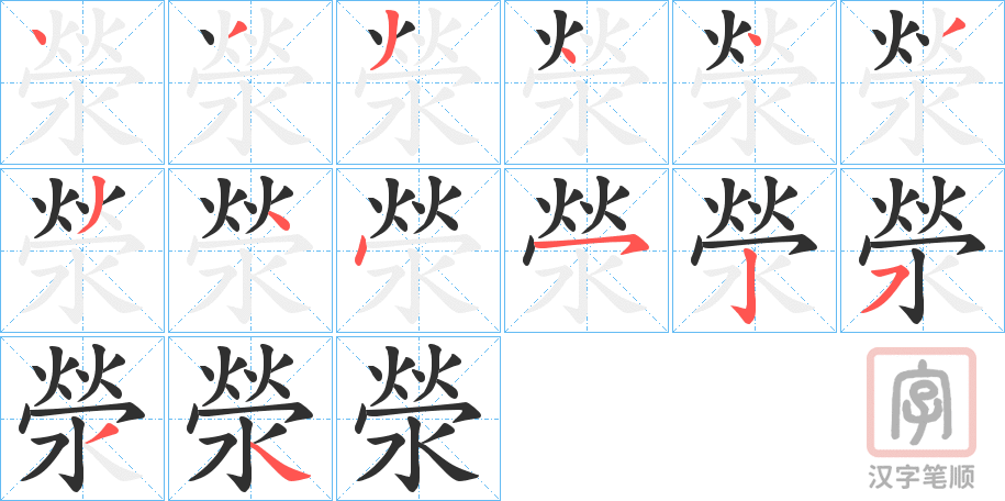 滎字的笔顺分步演示(一笔一画写汉字)