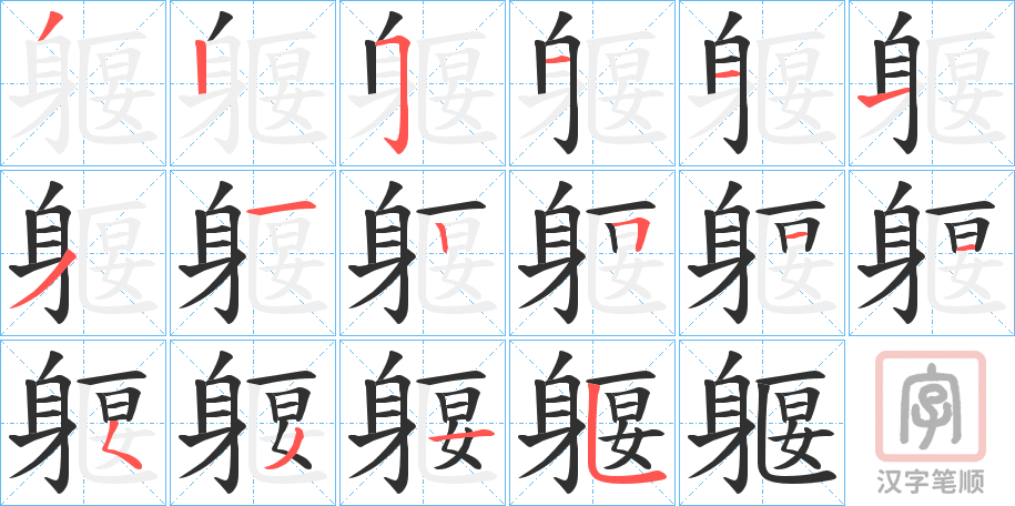 部首:身部 部外笔画: 9画 总笔画:16画 康熙字典:躽(16画)