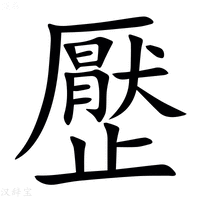 简体部首:止部 部外笔画:14画 总笔画:18画 造字法: 可拆字为“厭 止”