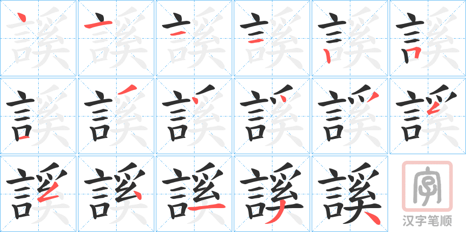 部首:言部 部外笔画: 10画 总笔画:17画 康熙字典:謑(17画)