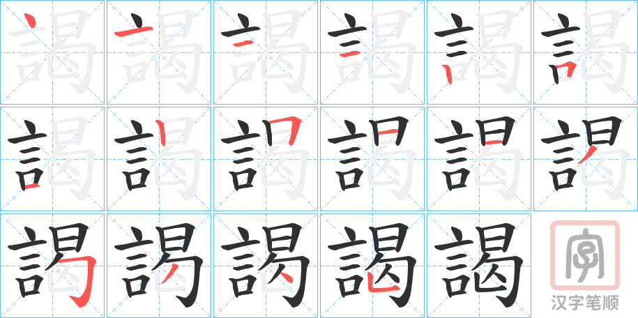 简体部首:言部 部外笔画:9画 总笔画:16画 造字法: 可拆字为“言 曷”