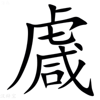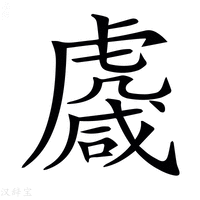 繁体部首: 虍部 汉字是否常用:否 吉凶寓意:中 字体结构:左上包围