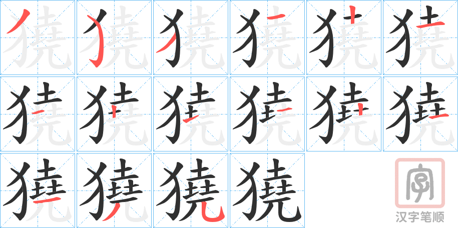 獟字的笔顺分步演示(一笔一画写汉字)