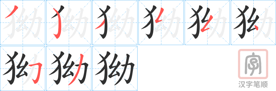 简体部首:犭部 部外笔画:5画 总笔画:8画 造字法: 可拆字为“犭 幼”