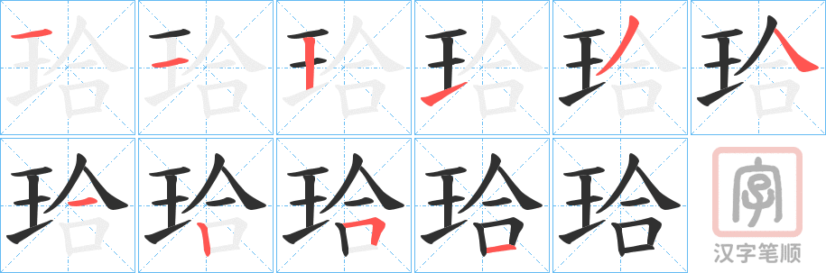 部首:王部 部外笔画: 6画 总笔画:10画 康熙字典:珨(11画)