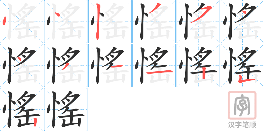 部首:忄部 部外笔画: 10画 总笔画:13画 康熙字典:愮(14画)