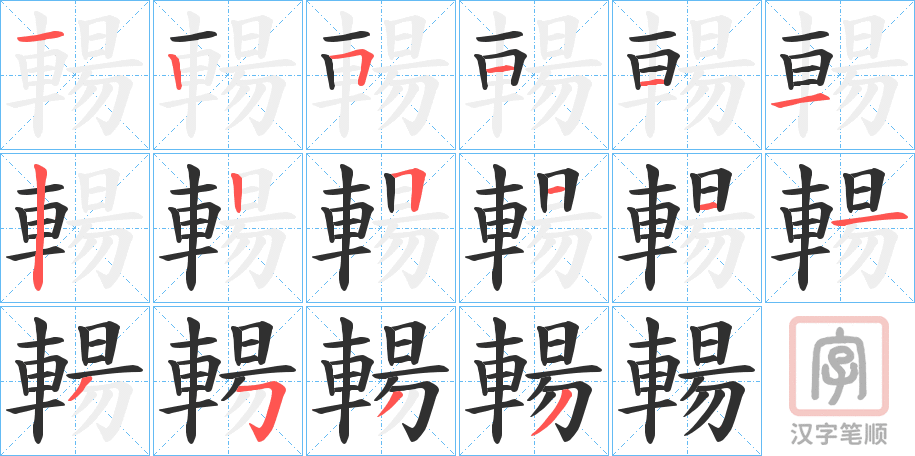简体部首:車部 部外笔画:9画 总笔画:16画 造字法: 可拆字为“車 昜”