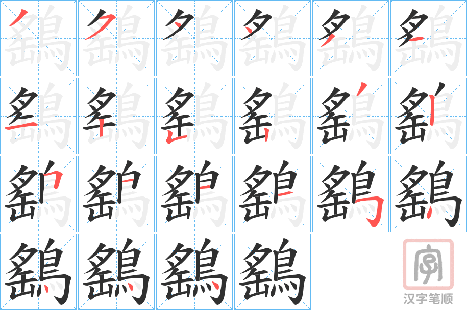 鷂字的笔顺分步演示(一笔一画写汉字)