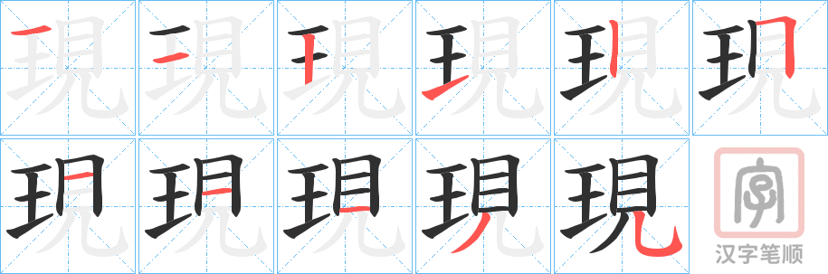 現字的笔顺分步演示(一笔一画写汉字)