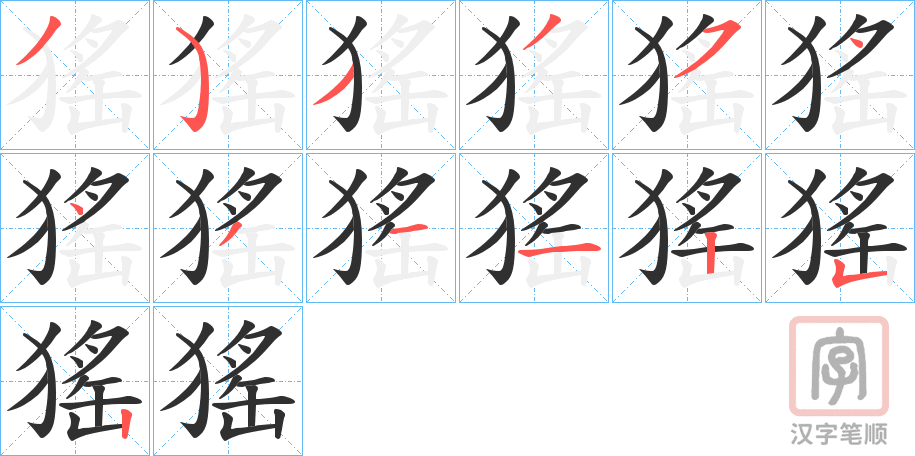 简体部首:犭部 部外笔画:10画 总笔画:13画 造字法: