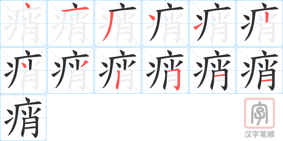 简体部首:疒部 部外笔画:7画 总笔画:12画 造字法: 可拆字为“疒 肖”