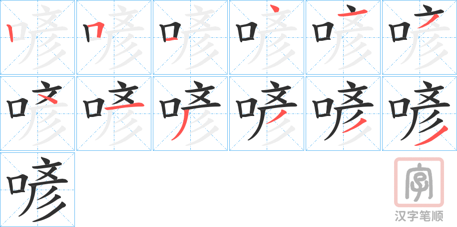 简体部首:口部 部外笔画:9画 总笔画:12画 造字法: 可拆字为“口 彦”