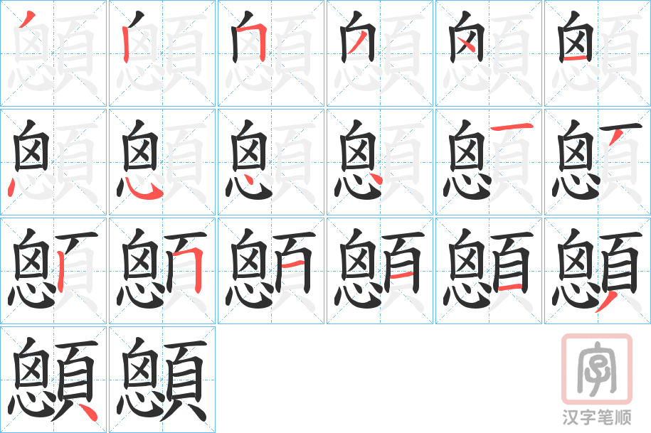顖字的笔顺分步演示(一笔一画写汉字)