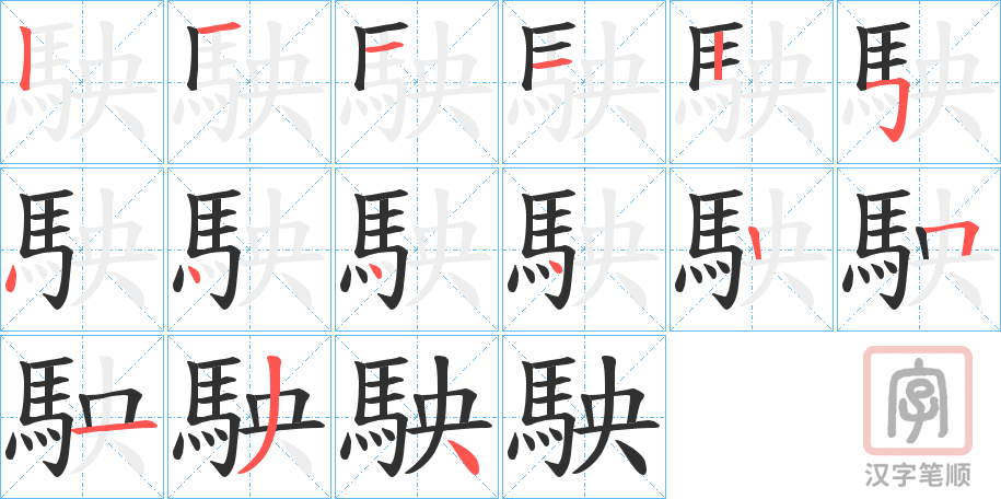 部首:馬部 部外笔画: 5画 总笔画:15画 康熙字典:駚(15画)