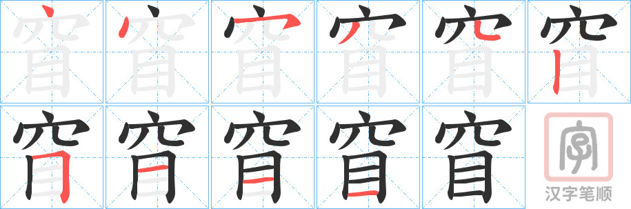简体部首:穴部 部外笔画:5画 总笔画:10画 造字法:会意