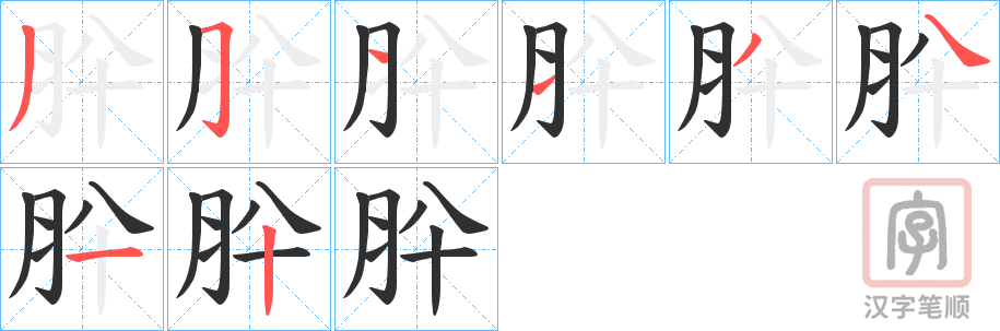 部首:月部 部外笔画: 4画 总笔画:8画 康熙字典:肸(10画)