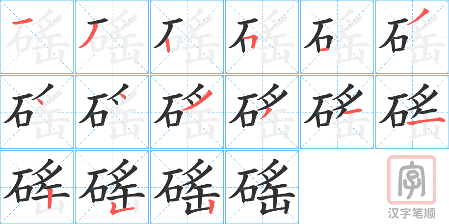 磘字的笔顺分步演示(一笔一画写汉字)