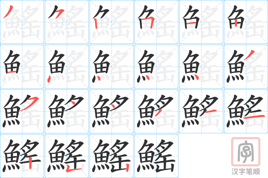 鰩字的笔顺分步演示(一笔一画写汉字)