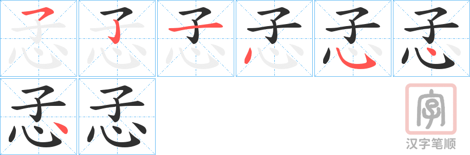 简体部首:子部 部外笔画:4画 总笔画:7画 造字法: 可拆字为“子 心”