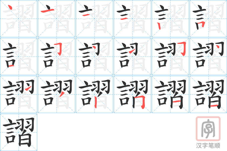 謵字的笔顺分步演示(一笔一画写汉字)