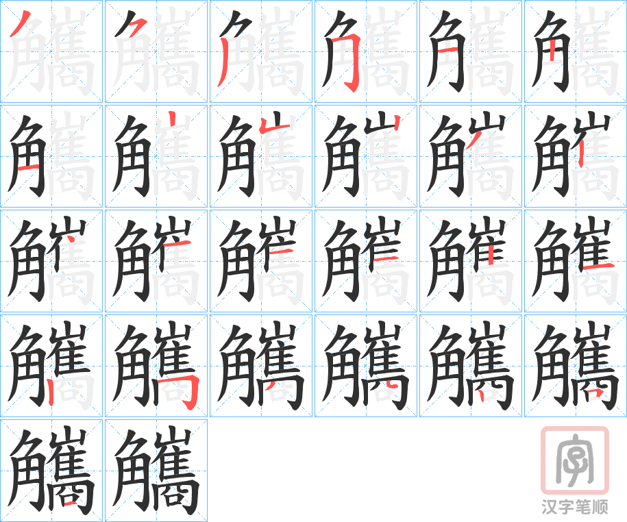 简体部首:角部 部外笔画:18画 总笔画:25画 造字法: 可拆字为“角 冏(巂)”