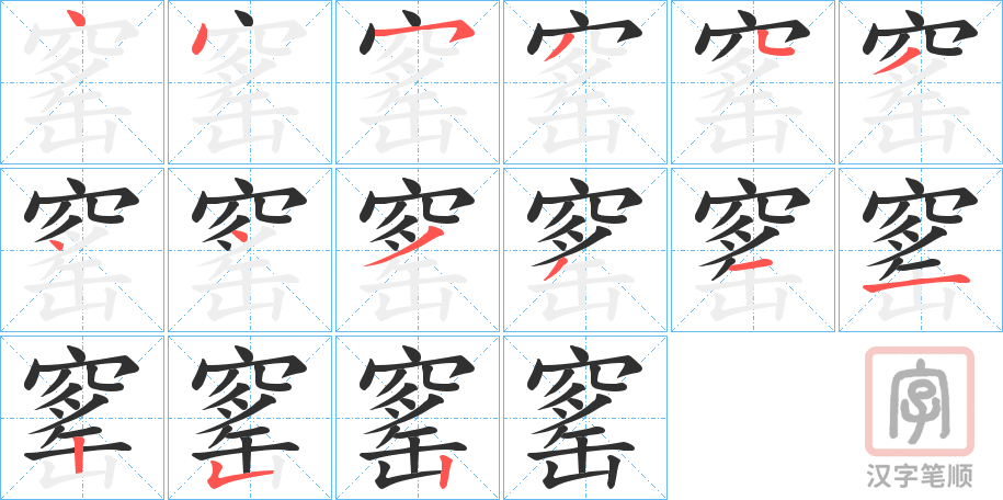 窰字的笔顺分步演示(一笔一画写汉字)