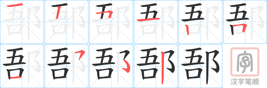 郚字的笔顺分步演示(一笔一画写汉字)