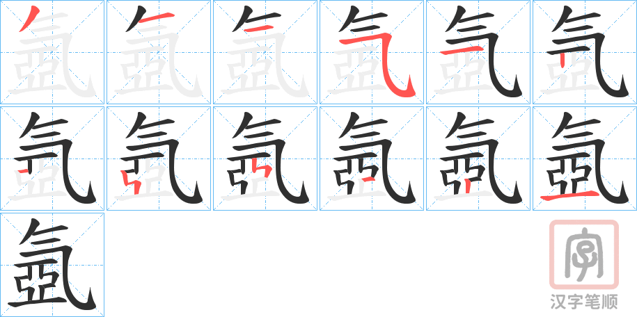 氬字的笔顺分步演示(一笔一画写汉字)