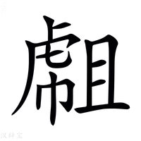 繁体部首: 虍部 汉字是否常用:否 吉凶寓意:中 字体结构:左下包围