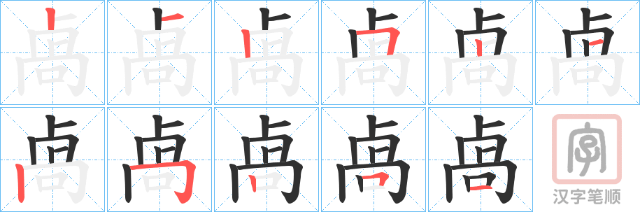 部首:卜部 部外笔画: 8画 总笔画:10画 康熙字典:卨(11画)